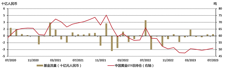 图5:7月,中国市场黄金ETF再次实现小幅流入