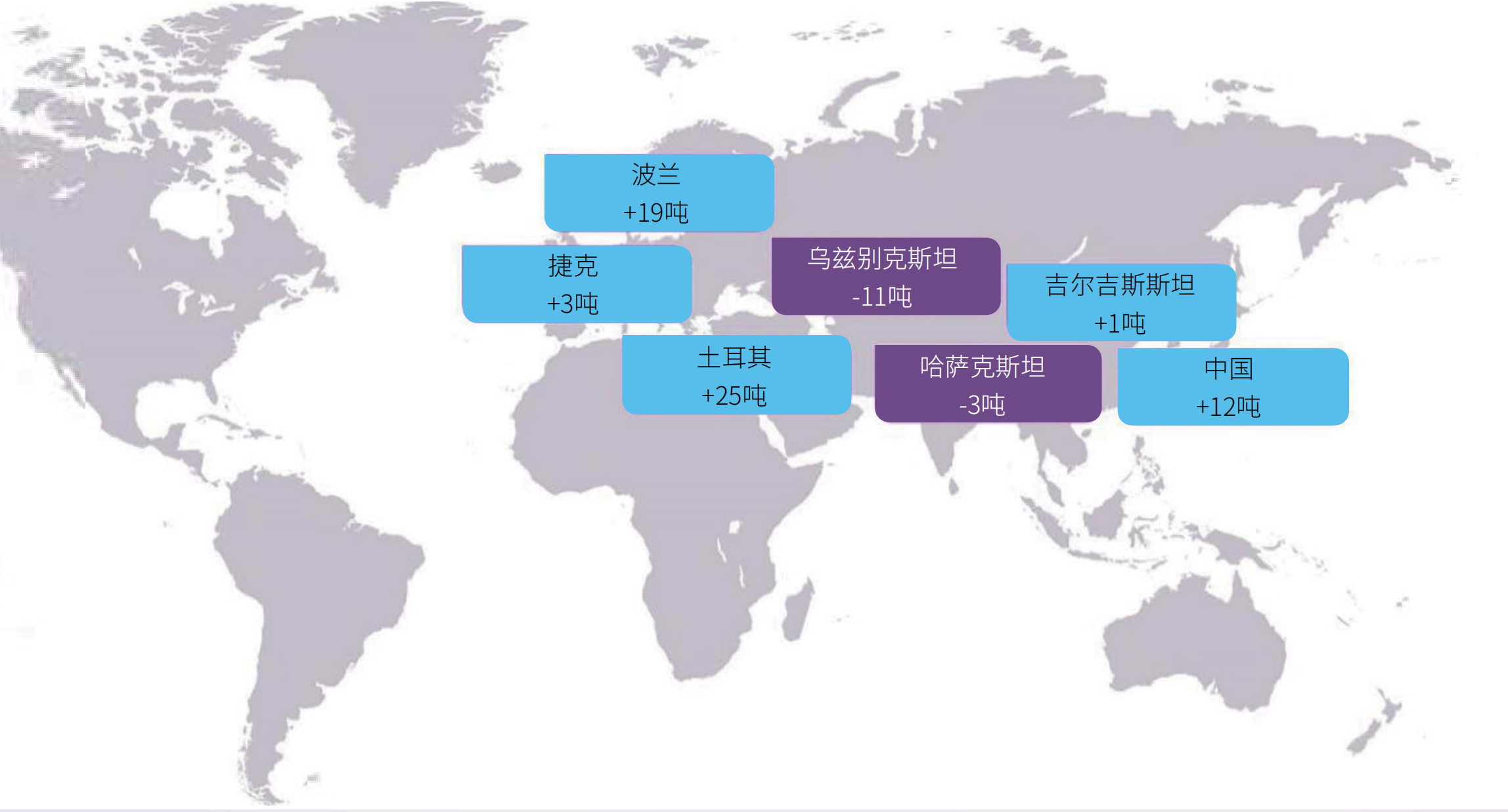 注:各国变化和年初至11月变化图表仅包括一吨或一吨以上的变化