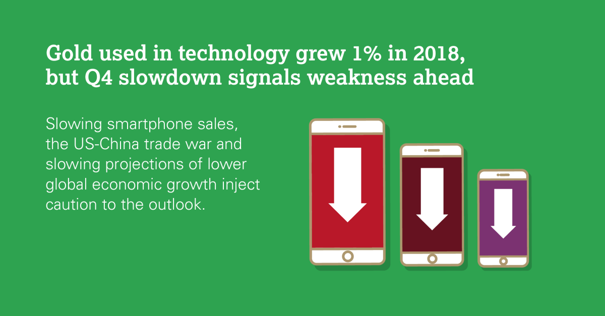 尽管受到第四季度需求放缓的抑制,2018年科技行业的黄金使用量仍略有增长