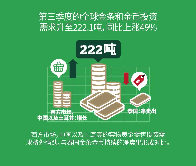 第三季度全球黄金投资增长强劲,在一定程度上弥补了其他黄金需求领域因新冠疫情导致的疲软