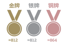2016年里约赛事将产生2,488枚奥运奖牌,包含812枚金牌、812枚银牌和864枚铜牌。