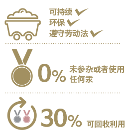 奥运金牌从开采到设计完全遵循可持续性发展标准,严格符合环保和劳动法。
